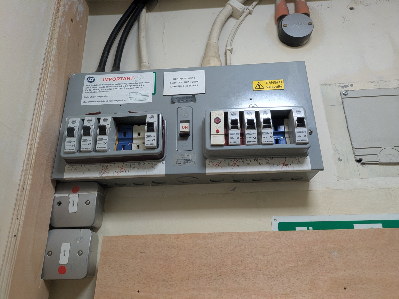 Common signs include rewireable fuses, lack of RCD protection, visible age, unclear labelling or recurring tripping.